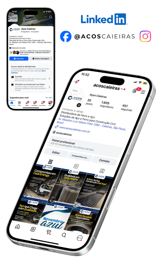 Siga a Aços Caieiras e fique por dentro de tudo sobre ferro e aço com qualidade.